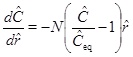 where Ĉeq=Ceq/C 0 and N is the Damköhler-number