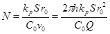 with respect to the characteristic radius r 0, and where v 0 is the Darcy flux at distance r 0 [16]. The Damköhler-number N is a measure of the reaction rate relative to the convective mass transport rate [16]. Reaction dominates transport when the Damköhler-number is much larger than 1, and the reaction rate is sufficiently fast to bring the calcium concentration to almost equilibrium. In the opposite regime, transport by convection dominates reaction, and the supersaturated fluid moves through the system too fast to experience noticeable reaction. The definition of the Damköhler-number shows that the Damköhler-number increases away from the well with the characteristic distance r2 0. This dependence on distance reflects the decrease in the Darcy flux with an increasing radius in cylinder coordinates. The dimensionless reaction-convection equation (23) has the solution for the calcium ion concentration
