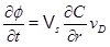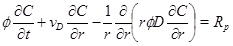 where the calcium ion concentration is denoted as C. The left-hand-side expresses the transport of calcium ions by means of advection with a radial Darcy flux, vD, towards the well and by diffusion with diffusivity, D. The right-hand-side of equation (4) is the precipitation rate [10, 13].