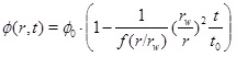 where rw is the well radius, pw is the well pressure and Q 0 is the initial production rate. It is now straightforward to integrate equation (27) to obtain the porosity as a function of time at a given radius