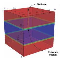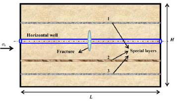 Fig. (11). Horizontal well model with a hydraulic fracture approaching the pre-existing different layers. |