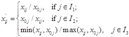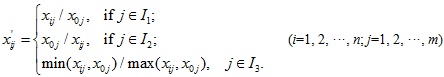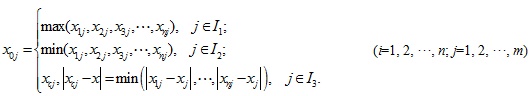Calculate the average value according to the column of matrix Y=(yij)n×m, and then normalization processing is performed: