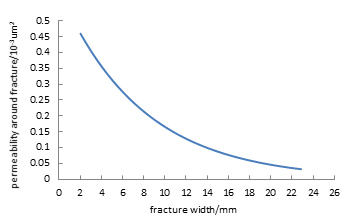 According to Table 2 [17], assume Young’s modulus of coal is 5000 MPa, Poisson’s ratio is 0.25, fracture height is 25 m, the initial permeability is 0.46 × 10-3μm2, the pore compressibility coefficient 0.16 MPa-1. The fracture net pressure and permeability can be calculated by equation (1), (2) with different fracture width.