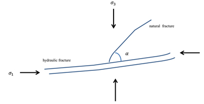 When the angle between natural and hydraulic fracture is determined, the force to shear natural fracture can be satisfied under known fracture net pressure.