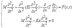 where M is the mass of per unit length of riser, T is the effective axial tension of riser, F is the load acting on per unit length of riser, u is the vertical displacement of riser, E is the elastic modulus of riser material, I is the inertia moment of riser and A is the sectional area of riser.