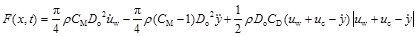 where ρ is the sea water density, Do is the outside diameter of riser, CM is the inertia coefficient, CD is the drag coefficient, uw is the water particle velocity, uw is the water particle acceleration, uc is the steady current velocity, ẏ is the riser velocity and ӱ is the riser acceleration.