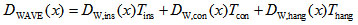 where DW,ins, DW,con and DW,hang are wave induced fatigue damage in installation, connection and hang-off modes, respectively; DV,ins, DV,con and DV,hang are vortex induced fatigue damage in installation, connection and hang-off modes, respectively; Tins, Tcon and Thang are the time of installation, connection and hang-off operation, respectively.