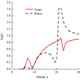 where uL is the single amplitude of platform drift motion in the horizontal direction, TL is the period of platform drift motion, αL is the phase difference between the drift motion and wave (usually taken as zero), R is the response amplitude operator, Dn is the amplitude of the n-th wave; kn is the number of the n-th wave; ωn is the circular frequency of the n-th wave; φn is the initial phase of the n-th wave; αn is the phase difference between wave motion and wave frequency motion (usually taken as zero).