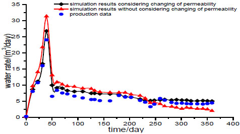 From Figs. (7 and 8), similar to gas rate curve, it can be observed that the water rate curve of consideration of deformation of rock is below the other case, and this is closer to the actual production data.