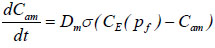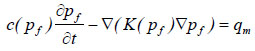 Where, Cam is the concentration of coal bed methane, Dm is the diffusion coefficient of gas, pf is the pressure of gas, CE is the concentration of gas in the fracture, c is the compression coefficient of gas, K is the permeability tensor of coal rock, q is source and sink item, here means the flux from the matrix to the crack system.