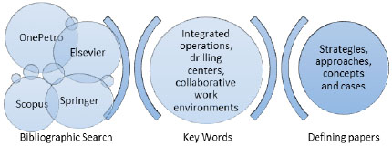 The methodological approach implemented in this study was based on a literature review to find applications, cases and strategies of IO and drilling center initiatives across oil operators. The methodological framework is presented in the Fig. (2). Four scientific bases were used: the OnePetro, Springer, Elsevier and Scopus online collections of scientific and technical documents. Search of the databases was based on the keywords integrated operations, drilling centers, and collaborative work environment. The final result is the reference list of this article.