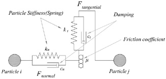 Where Fijn and Fijt are the normal and tangential contact forces between particle i and j respectively, They can be expressed as: