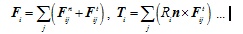 When particle i is contacting with multiple particles, the total force and moment can be expressed as: