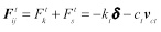 Set a 3D spherical particle as number i, when it crashes into the other particle as number j, the contact force and moment acted on it can be expressed as: