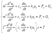 Where, m* is the equivalent mass of two collision particles, I* is equivalent moment of inertia, S is radius of gyration, un, us are normal and tangential displacement respectively. θ is rotation angle of particle. Gn and Gt are the normal and tangential components of gravity. Fn ,Ft, T are expressed as formula (1)~(2).